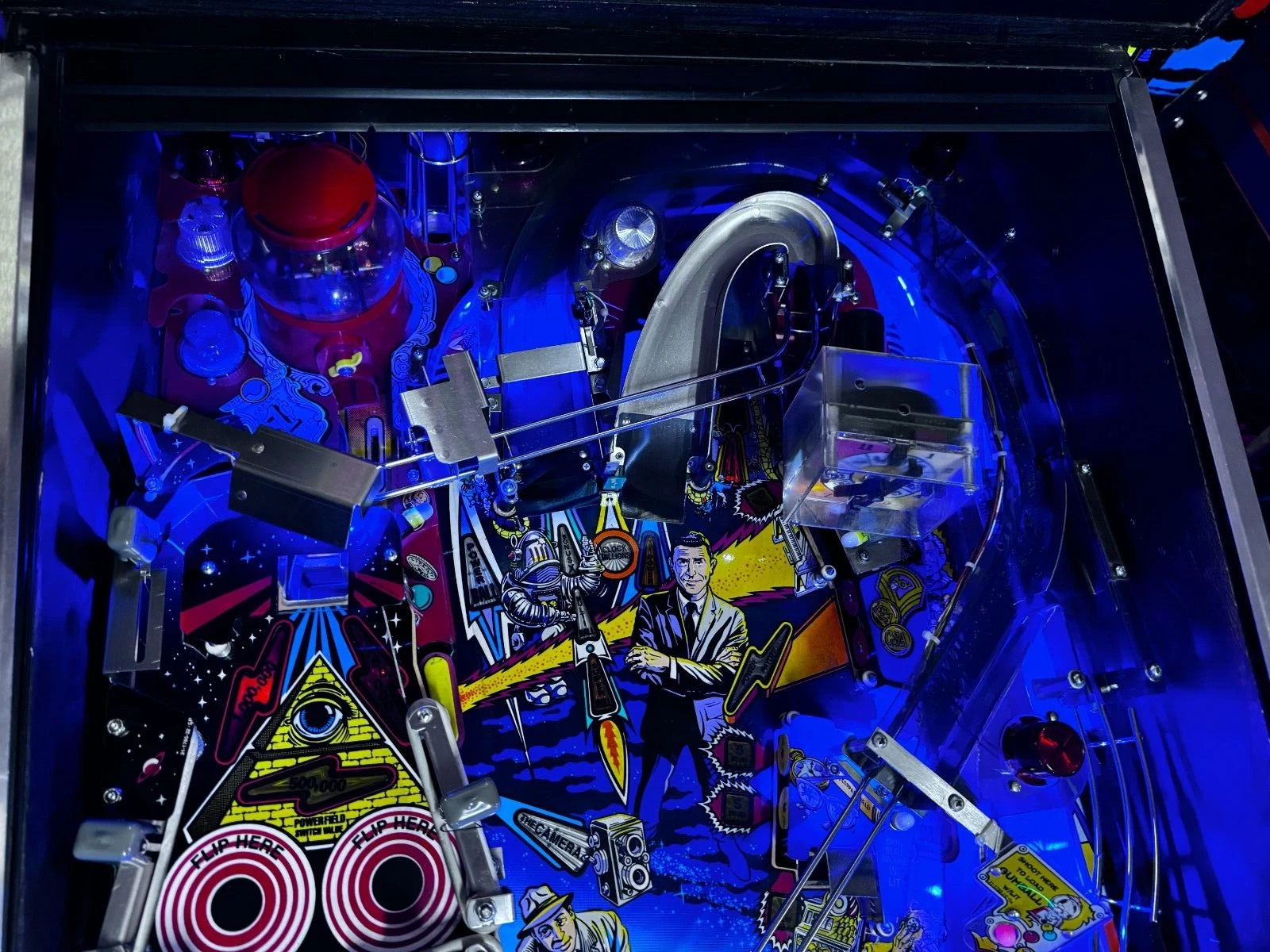 • Backglass Artwork: Features Rod Serling and other iconic Twilight Zone imagery, creating a dramatic centerpiece for the machine.