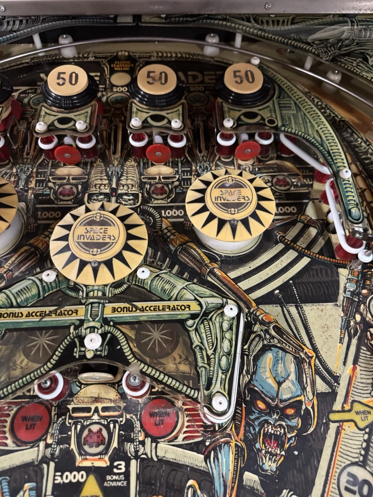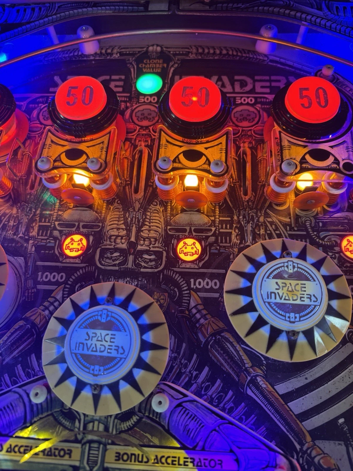 The Space Invaders Pinball Machine features a dynamic and visually appealing playfield: