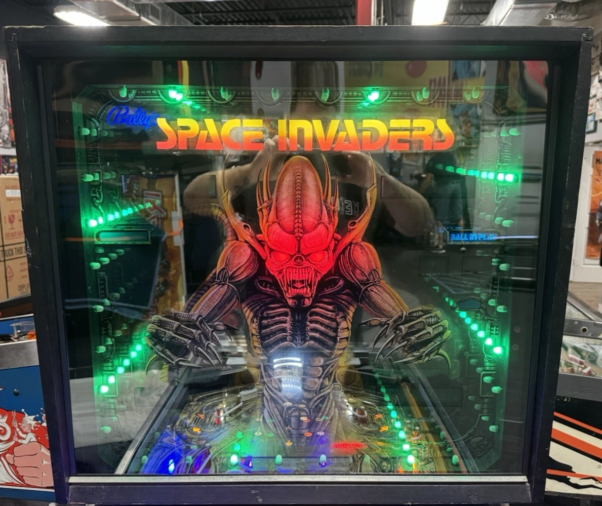Space Invaders pinball machine 1980, Bally Space Invaders pinball, fully serviced vintage pinball, classic arcade pinball machine, Space Invaders collectible, retro 1980s pinball, arcade video game pinball, Space Invaders home arcade, smooth gameplay pinball, iconic Bally pinball machine.
