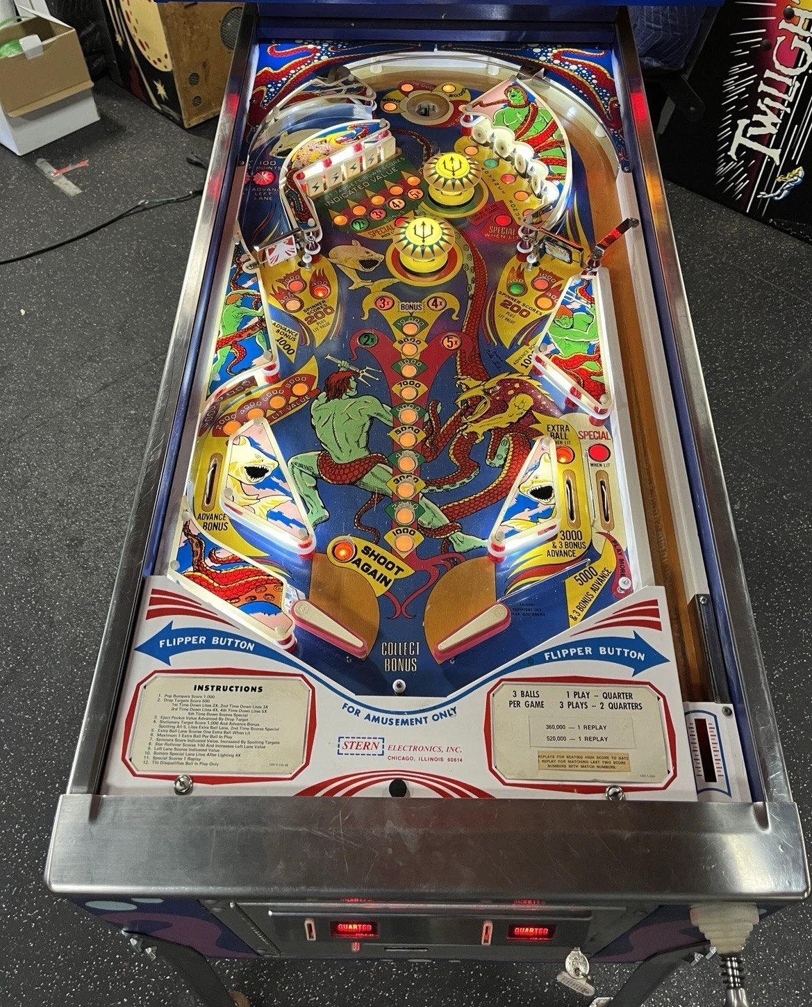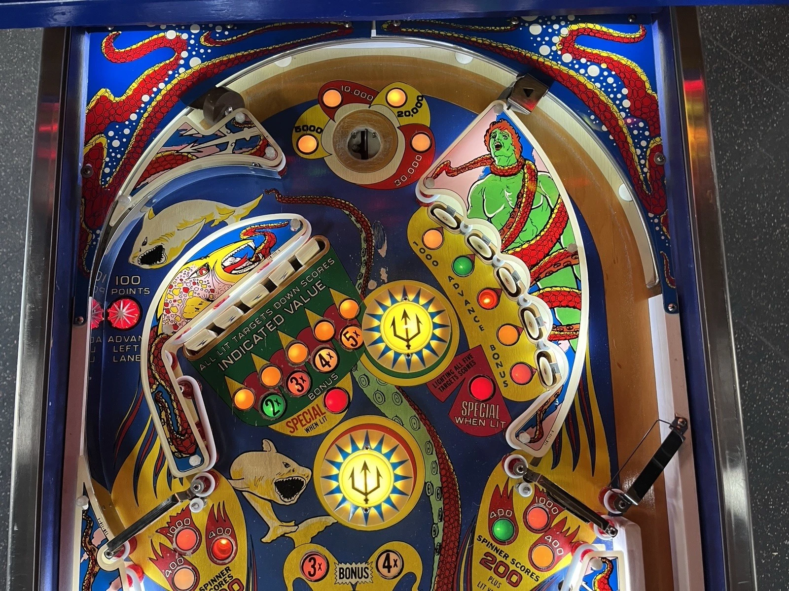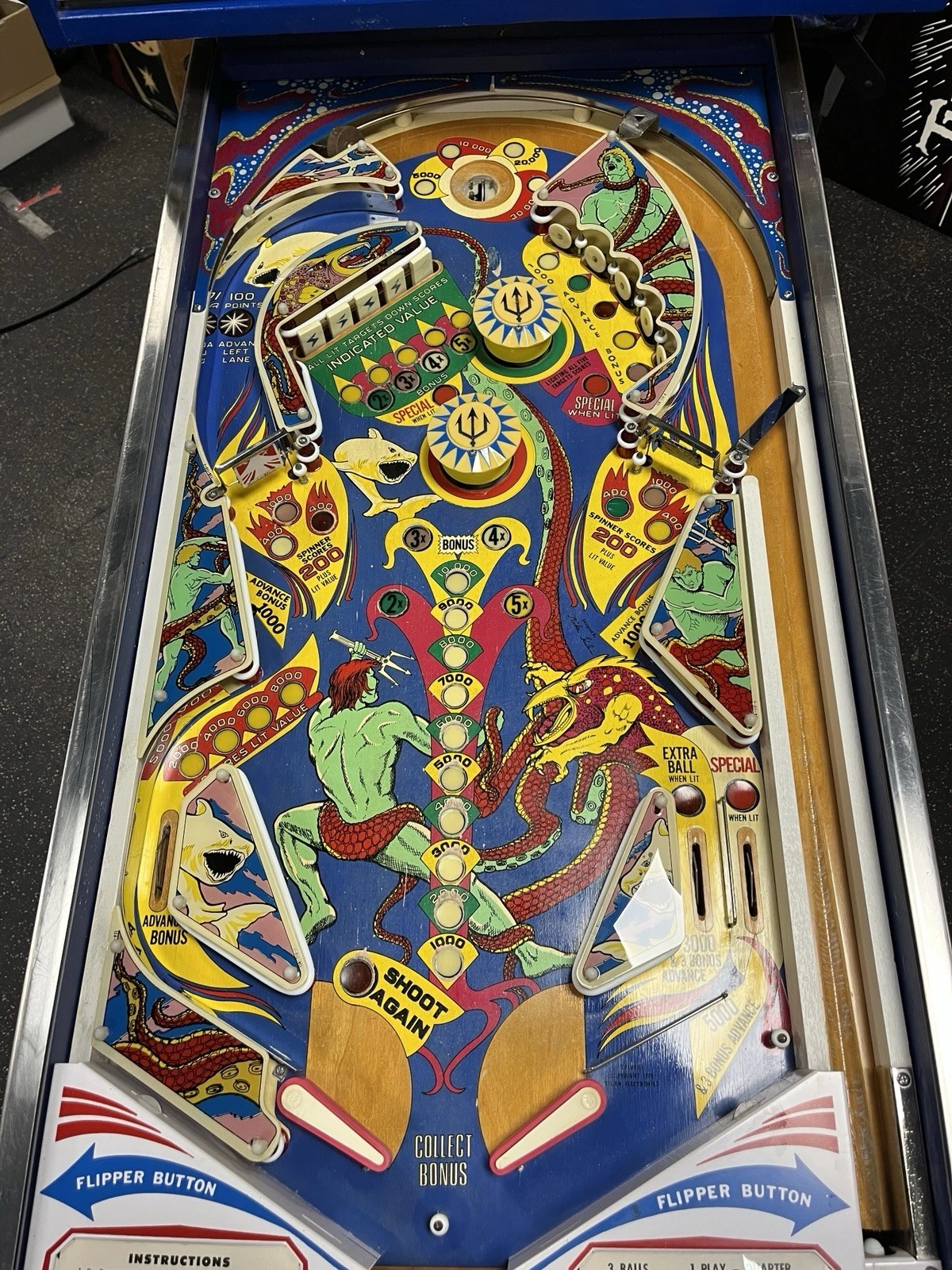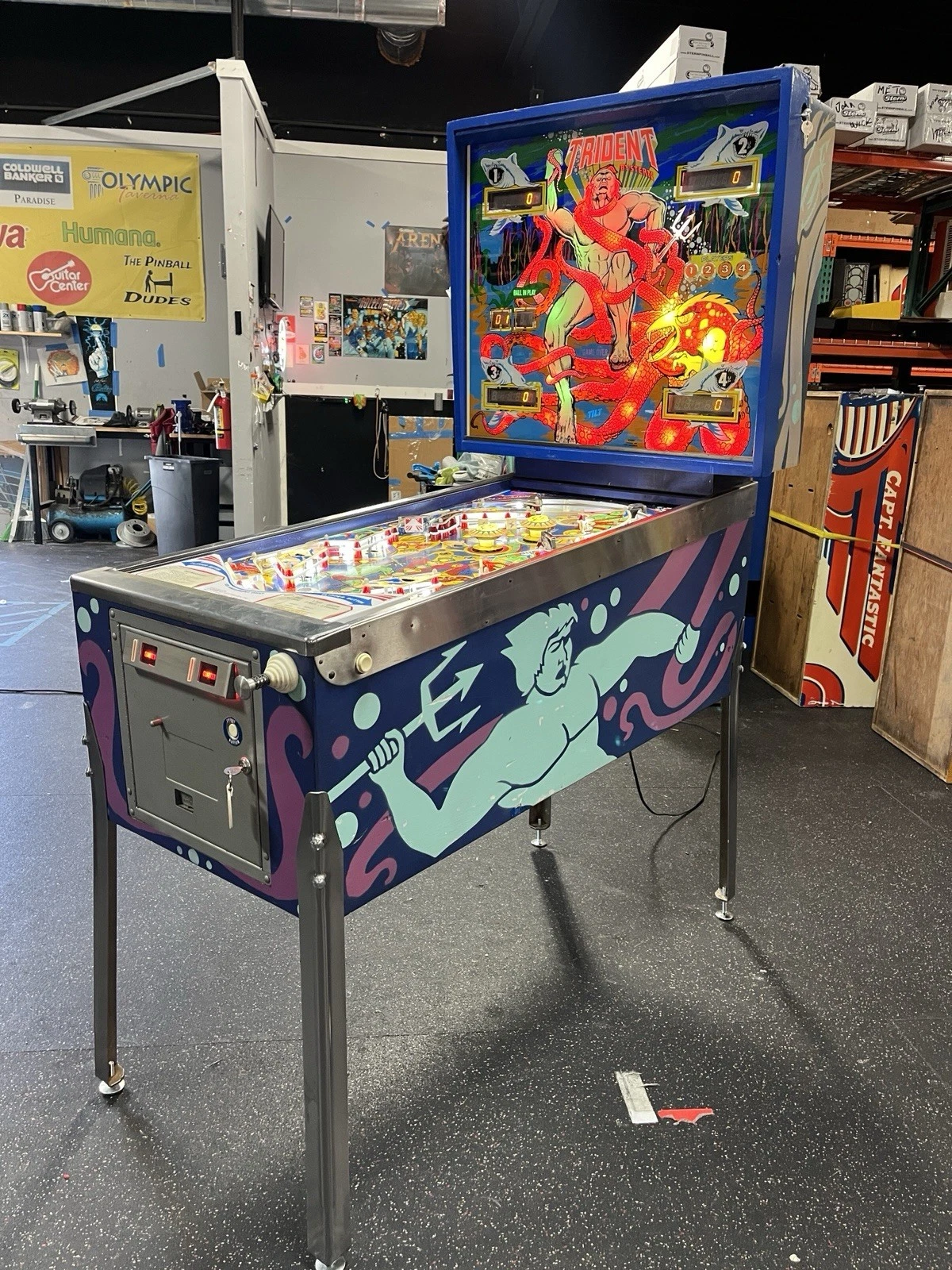 1979 Trident pinball machine, Bally Trident pinball, vintage underwater pinball, classic 1970s pinball, Trident arcade machine, collectible pinball machine, retro pinball game, interactive pinball, Trident collector pinball, 1979 Bally pinball machine.